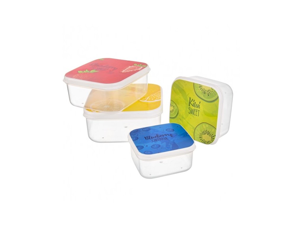 Box súprava na desiatu FRUIT so 4 rôznymi veľkosťami dóz s viečkom. V dózach môžete uschovávať potraviny alebo v nich zohrievať jedlo. Vhodné do umývačky na riad a do MVR bez viečka. Vyrobené z kvalitného plastu.