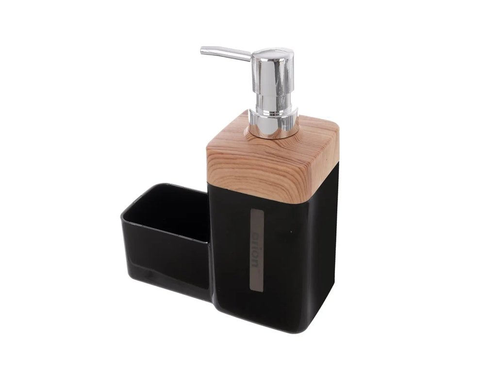 Orion Dávkováč mydla BLACK Wooden s organizérom 0,38 l čierna