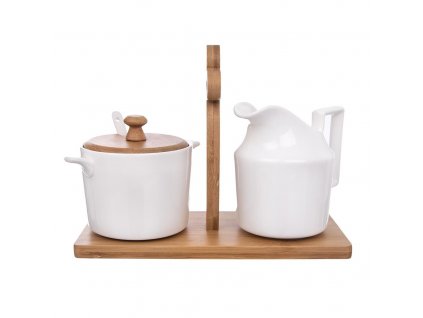 Porcelánová dochucovacia súprava WHITELINE na bambusovom podnose. Súčasťou balenia sú 2 porcelánové koreničky na soľ a korenie, stojan na papierové obrúsky. Táto elegantná dochucovacia súprava pôsobí jemne na každom jedálenskom stole.