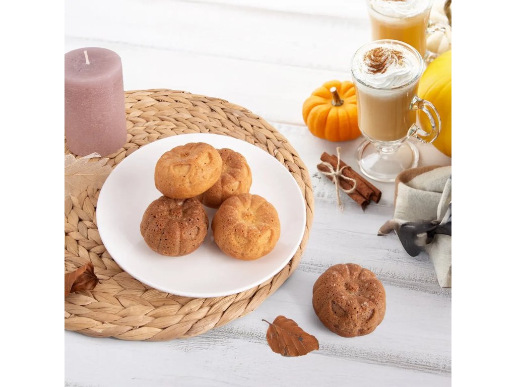 Nepriľnavá silikónová forma na pečenie Halloween 3D tekvica vám pomôže upiecť 6 ks sladkých muffinov súčasne. Halloweenska forma má prepracované detaily 3D tekvice. Okrem toho forma disponuje pružnosťou a nepriľnavosťou pre ľahšie pečenie. Jedná hotová 3D tekvica má priemer približne 7 cm.