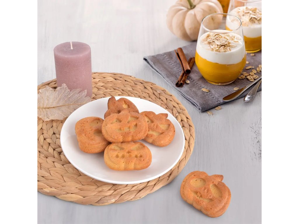 Nepriľnavá silikónová forma na pečenie Halloween Tekvica vám pomôže upiecť 6 ks sladkých muffinov súčasne. Halloweenska forma má prepracované detaily tekvice. Okrem toho forma disponuje pružnosťou a nepriľnavosťou pre ľahšie pečenie. Jedná hotová tekvica má veľkosť približne 7,5x7 cm.
