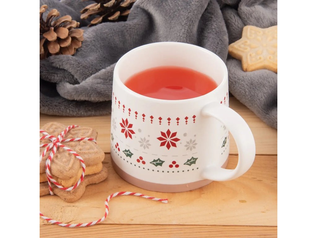 Krásny hrnček s dekorom HVIEZDA s objemom 0,4 l je vhodný na podávanie čaju, kávy, vareného vína, punču a ďalších obľúbených nápojov v zimnom období. Hrnček sa hodí aj ako darček. Možno ho použiť v mikrovlnnej rúre aj v umývačke na riad.