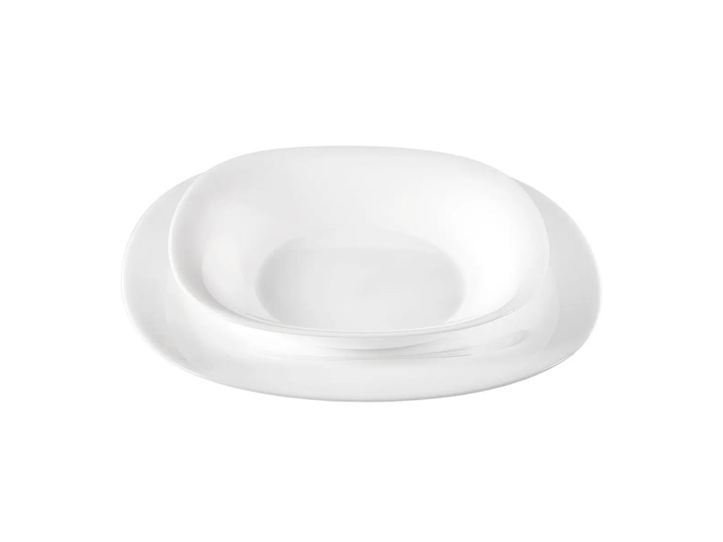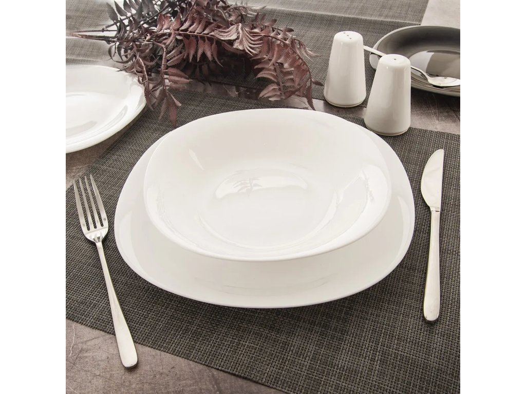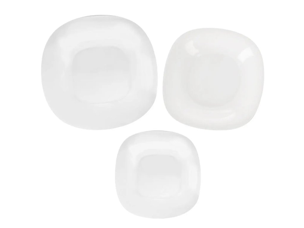 Jedálenská súprava LUNA z kvalitného opálového skla obsahuje 6 hlbokých, 6 plytkých a 6 dezertných tanierov hranatého tvaru. Táto moderná a nadčasová súprava tanierov sa hodí na bežné stolovanie ale aj pri sviatočných príležitostiach. Vďaka hranatému, zaoblenému tvaru tanierov vynikne aj foodstyling. Taniere možno použiť v mikrovlnnej rúre aj v umývačke na riad. Odolné sú voči teplotám do 100 °C.