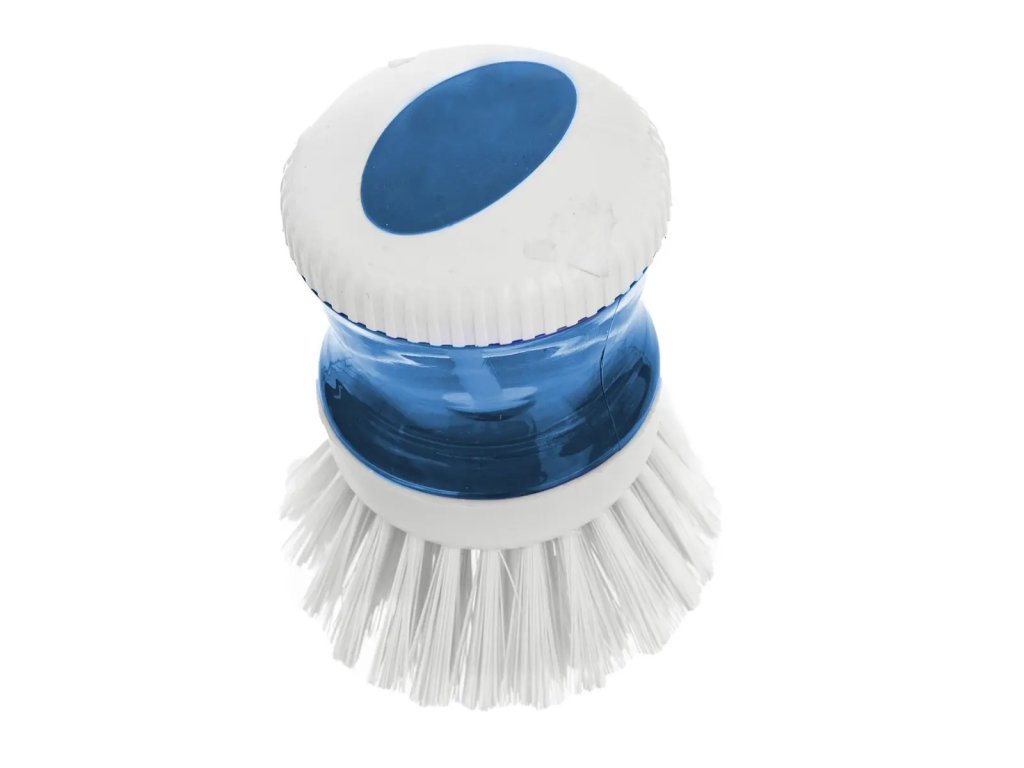 Kefa na riad s praktickým dávkovačom saponátu vám uľahčí každodenné umývanie riadu. Zásobník jednoducho naplníte saponátom na riad a následným stlačením hornej časti kefy dávkujete potrebné množstvo prípravku priamo na jej štetiny. Vyrobená z plastu TPR, PP a PS.