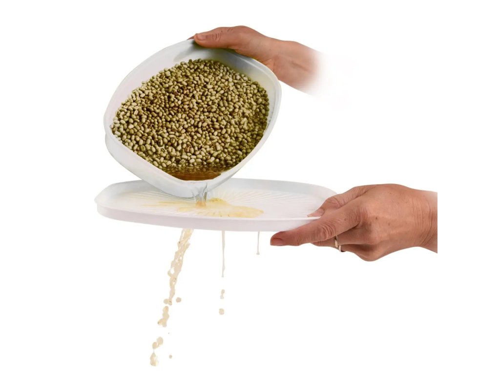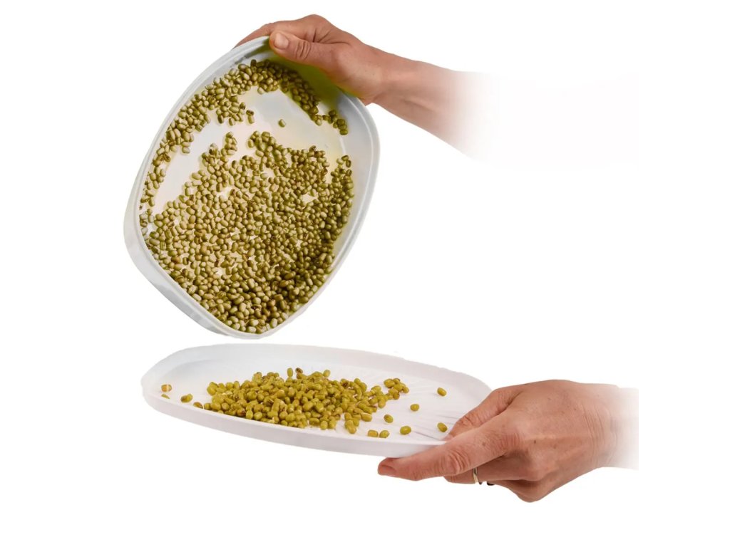 - Scedenie – po uplynutí doby sceďte semienka cez plastové sitko (súčasť misky) a rovnomerne ich po ňom rozprestrite.