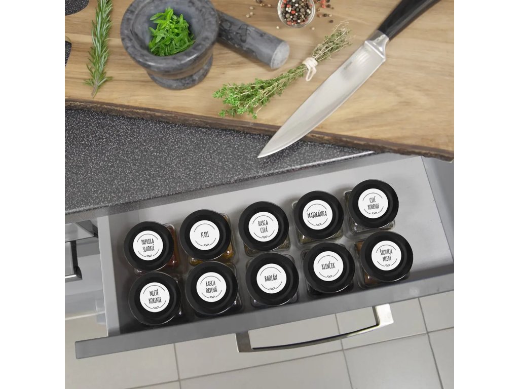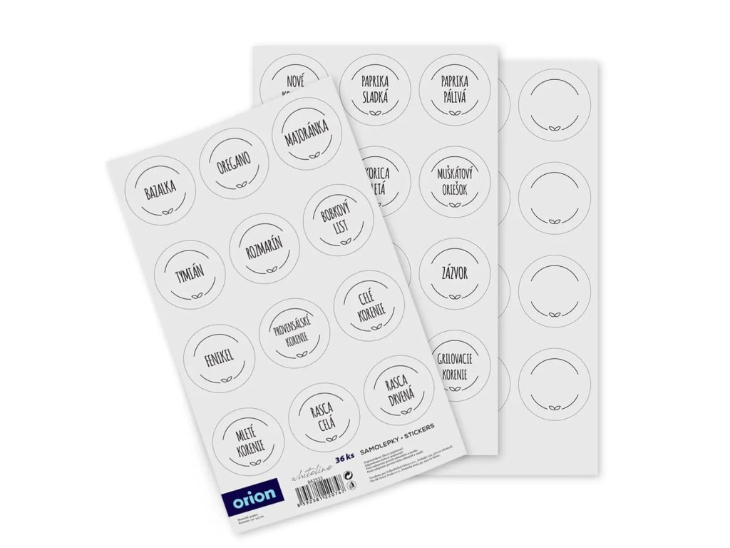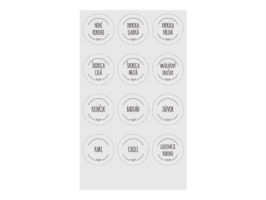 Súprava 36 ks nálepiek WHITELINE na označenie koreničiek, dóz alebo sklenených fliaš. Jedna nálepka má priemer 3,5 cm. Predtlačené sú najpoužívanejšie druhy korenia a jeden hárok je prázdny, takže si môžete dopísať chýbajúce korenie.