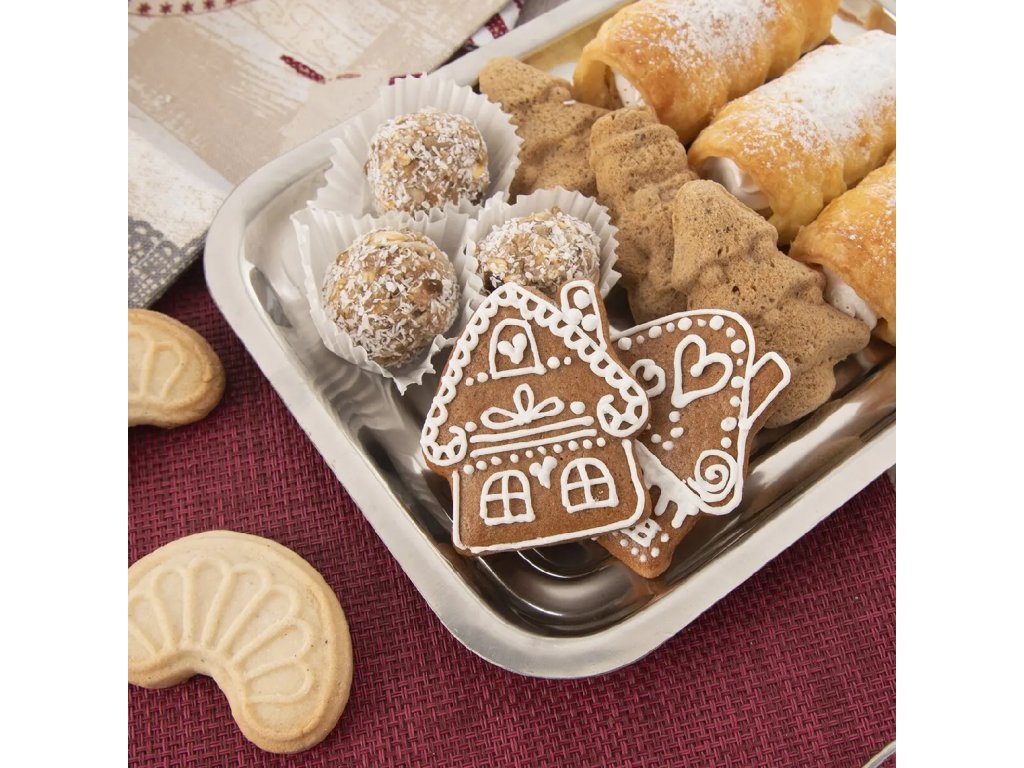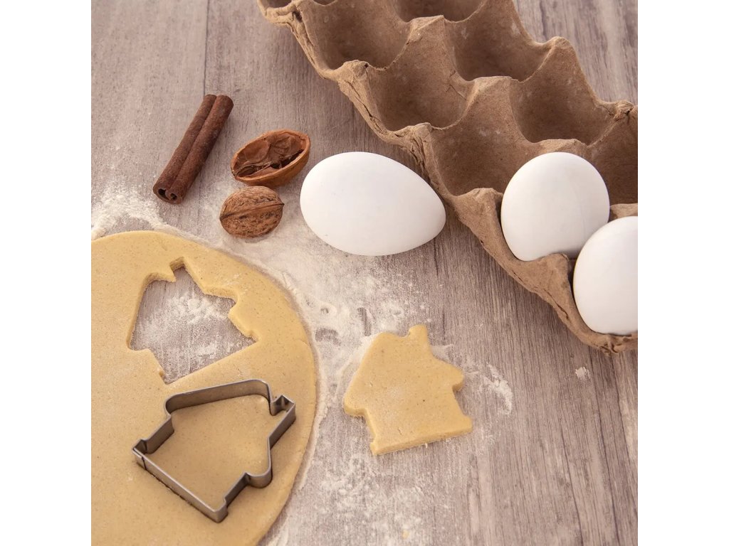 Vykrajovačka z nehrdzavejúcej ocele v tvare DOMČEKA. Vhodná na výrobu medovníkov, sušeniek, lineckého pečiva, perníkov, vďaka ostrým dolným hranám. Potom cukrovinku stačí len ozdobiť podľa vlastnej fantázie.