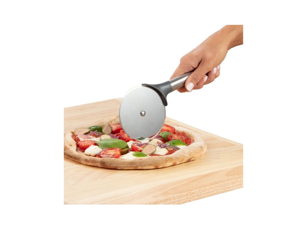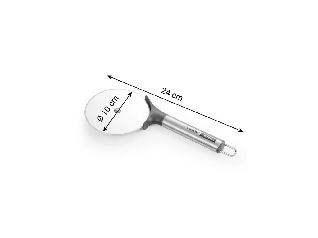 Krájacie koliesko na pizzu GrandCHEF s priemerom 10 cm na porciovanie pizze, vyšších koláčov, múčnikových rezov, nákypov a pod.. Veľké krájacie koliesko je vyrobené z prvotriednej nehrdzavejúcej ocele a odolného plastu. Vhodné aj do umývačky na riad. Záruka 3 roky.