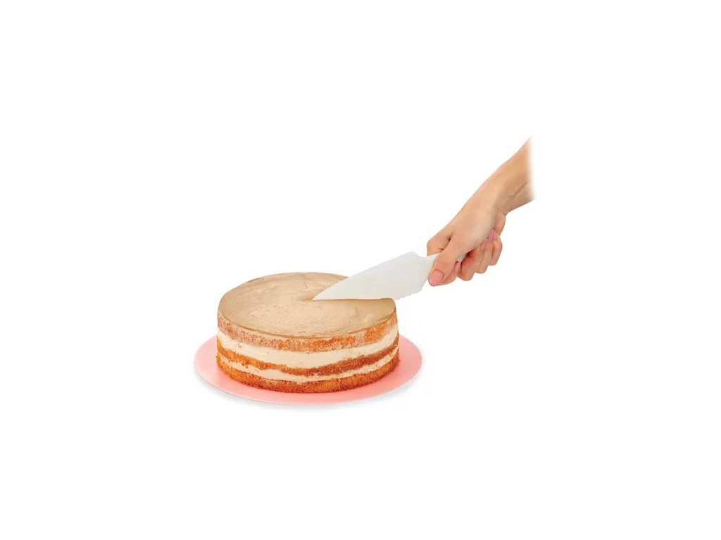 Praktický obojstranný nôž na múčniky DELÍCIA disponuje vlnkovým aj rovným ostrím. Čepeľ noža je dostatočne veľká na porciovanie a prenášanie múčnikov. Taktiež nôž využijete na roztieranie poliev a krémov. Vhodný aj do foriem na pečenie a plechov, ktorý nepoškodí. Vyrobený z kvalitného a odolného recyklovateľného plastu. Vhodný aj do umývačky na riad. 3 roky záruka.